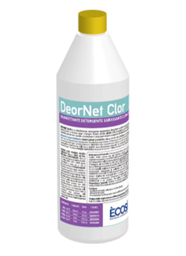 DEORNET CLOR è un detergente disinfettante sgrassante a effetto deodorante particolarmente efficace per disinfettare pavimenti e rivestimenti, sanitari, rubinetterie, superfici in acciaio, servizi igienici e spogliatoi.