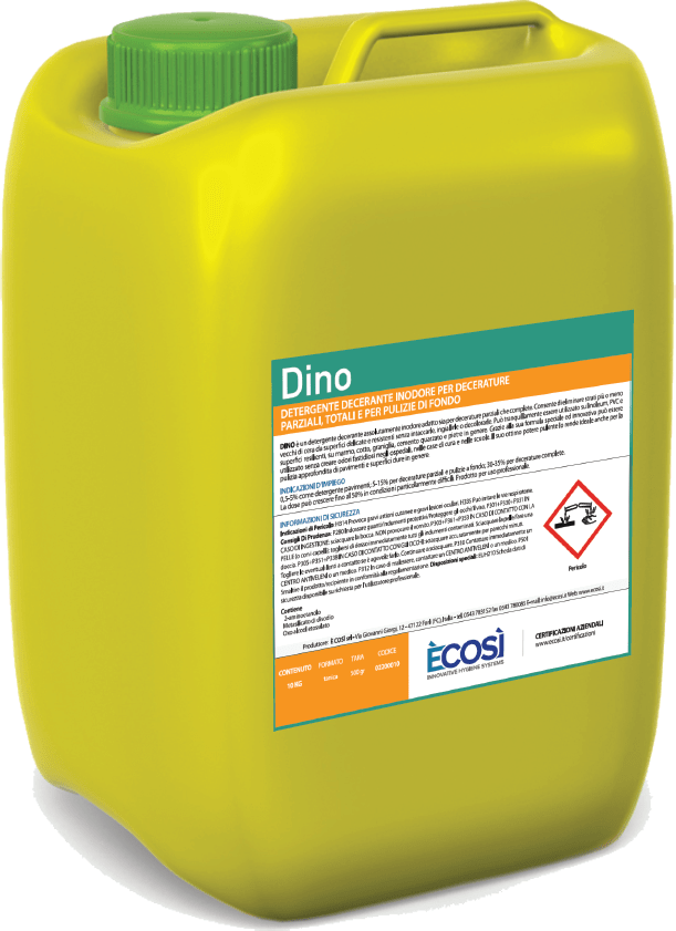 DINO è un detergente decerante assolutamente inodore per decerature parziali o complete e per la pulizia approfondita di pavimenti. Consente di eliminare strati più o meno vecchi di cera da superfici delicate e resistenti senza intaccarle, ingiallirle o decolorarle. Può essere utilizzato su linoleum, PVC e superfici resilienti, su marmo, cotto, graniglia, cemento quarzato e pietre.