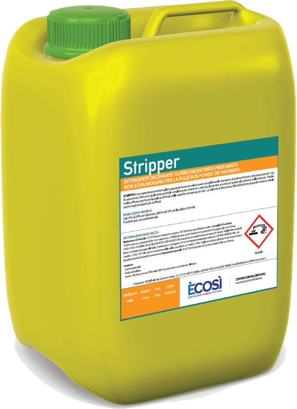 In conclusione, “STRIPPER” si configura come un prodotto leader nel settore dei detergenti per la pulizia dei pavimenti, combinando efficacia, praticità d’uso e risultati duraturi. La sua capacità di rimuovere anche le macchie più ostinate e radicate, insieme alla facilità di risciacquo e al profumo gradevole lasciato nell’ambiente, lo rendono un alleato affidabile per la pulizia di ogni tipo di superficie, sia in contesti domestici che professionali